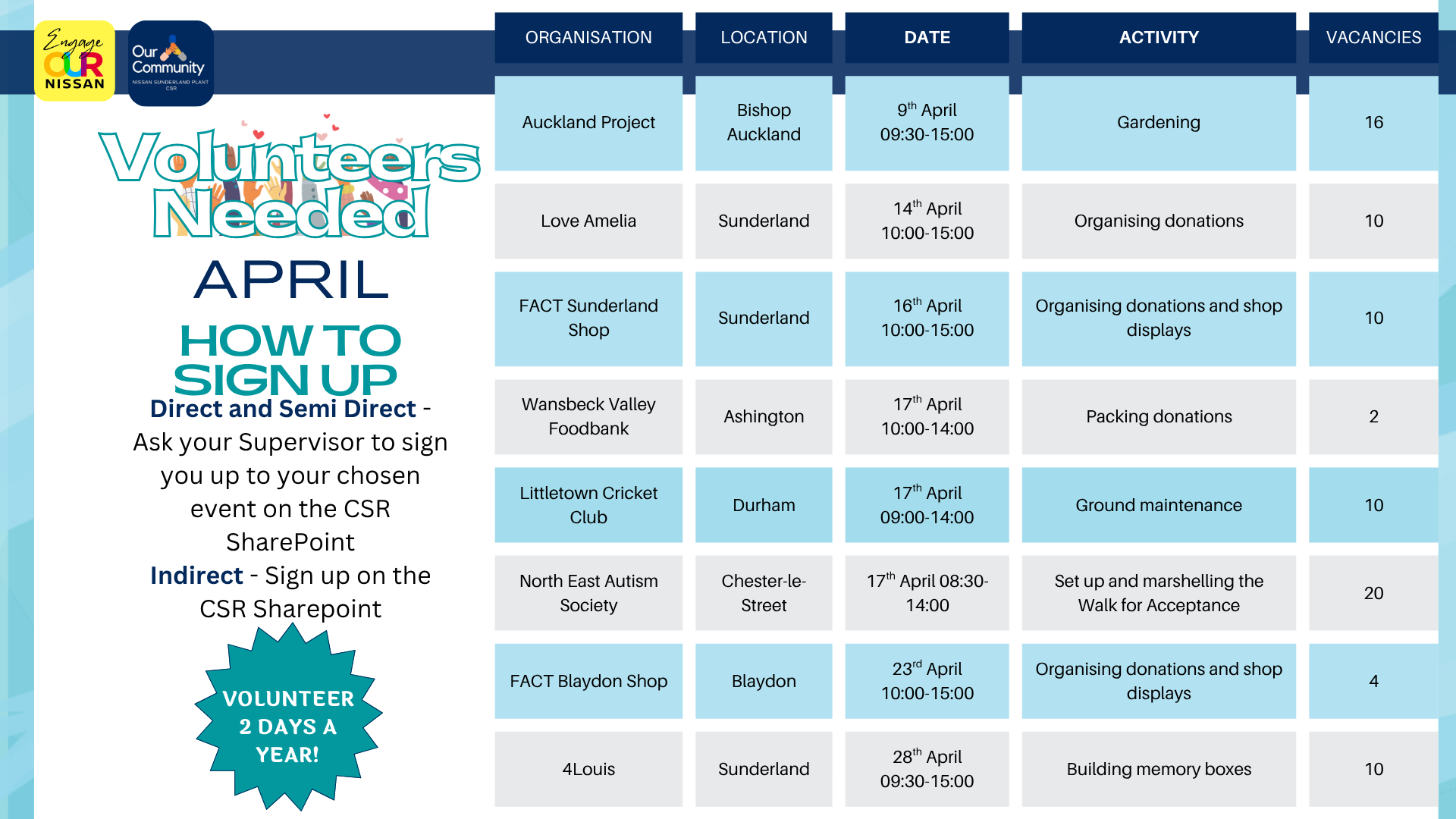 Sign up to volunteer in April